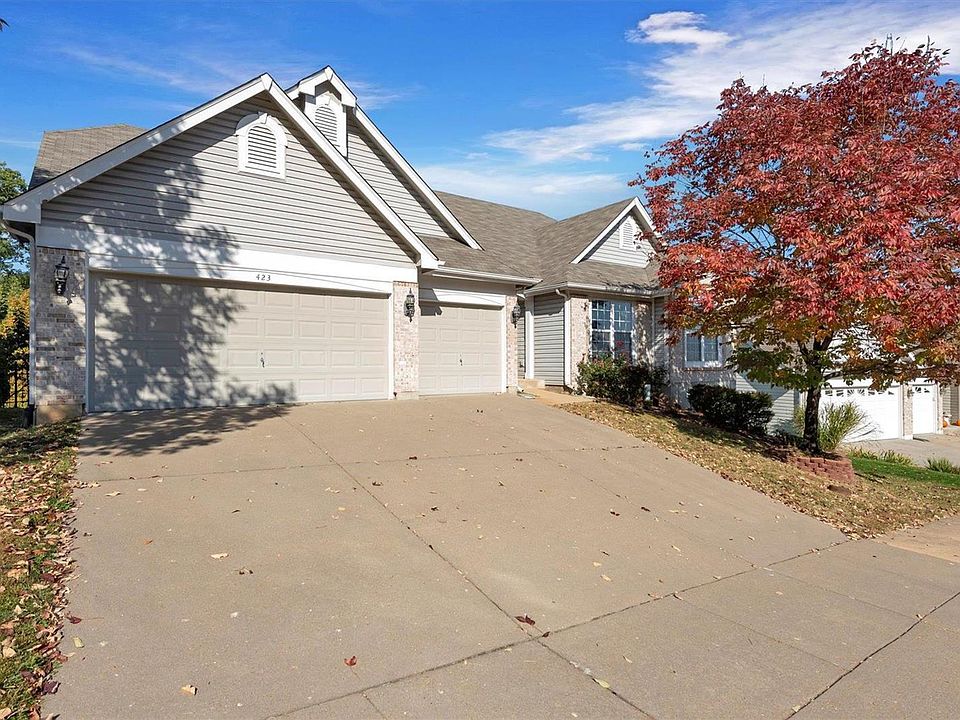 Spacious atrium ranch within the sought-after Legends neighborhood and the Bluffs One Subdivision. Here's your opportunity for views of the golf course and optional access to all the club amenities including golf, pool, country club and tennis. Still under original ownership, this family home has been well maintained and was built with many upgrades and features including vaulted ceilings in the kitchen, breakfast, dining, living room and master bedroom, sloped ceiling in the master bath, bay window in the master bath as well as the master bedroom, media room on the main level, fourth bedroom and family room in lower level, 3 car garage, 20x12 cedar deck, fruitwood cabinets in the kitchen and so much more!