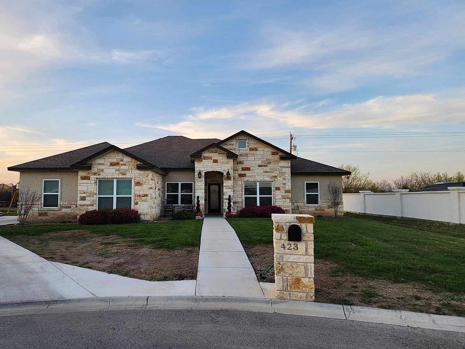 Welcome to 423 Mountain View Dr., nestled at the end of a quiet culdesac in desirable Ceniza Hills. This custom home features 4 bedrooms, (one which has an en-suite aside from the master), 3 bathrooms and a separate office. As you enter, you are welcomed by a beautiful foyer with 14 ft ceilings and a spacious living room with 10 ft. ceilings throughout. Enjoy a gorgeous stone electric fireplace, with floating shelves on either side. The kitchen is a chef's dream featuring double ovens, a convenient pot filler helping make dinner a breeze, custom cabinetry, and an oversized leathered granite island perfect for entertaining. This house has so much more to see. More pictures coming soon.