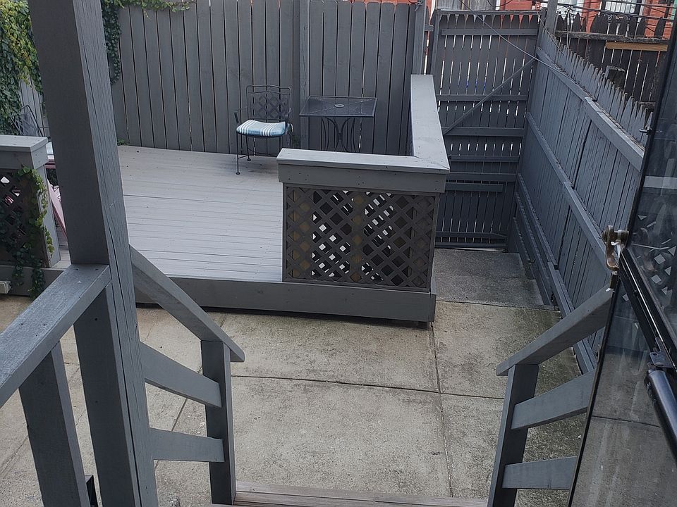 Modern two-bedroom apartment near Drexel and Penn! This unit offers a very unique large private patio for grilling, entertaining, and gardening usage that is solely for use by this unit's tenants! It is a great place to enjoy a morning coffee as you prepare for the day or a sunset glass of tea as you take some time to unwind. The designer kitchen features a quartz countertop and backsplash, hardwood cabinets with slow-close drawers, and a designer faucet, with a gorgeous natural exposed brick wall conveniently placed outlets for coffee maker, toaster, etc. and plenty of countertop space for food prep. The kitchen also offers a stainless steel microwave, a dishwasher, a gas stove, a refrigerator with an ice maker, and plenty of cabinet storage space for all of your cookware. The stove vent exhausts to the outside instead of indoors, avoiding any smoke or grease mist buildup. The sterling oak waterproof vinyl plank flooring in the bathroom is beautiful and makes for easy cleanup of any spills and messes. The bathroom is spacious and well-lit with light green colored walls, earthy tone tiled shower/tub, and a nice-sized vanity. The bedrooms both a double hung window with natural light, and a closet for hanging and storing clothes. The bedrooms also have additional out of the way storage cabinets for extra storage that are easily accessible by the provided ladders so you can keep your stuff while at the same time keeping visible clutter down. Each bedroom has room for up to a king size bed and desk, one bedroom has bamboo hardwood flooring and the other sterling oak flooring. The front bedroom is bright, with a large double-hung window and a natural brick wall that gives the room great character. Both bedrooms can also easily be used as an office or art studio! There is a convenient laundry facility in the building. The unit offers central heating controlled by the tenant and window air conditioners for the summer heat. Both bedrooms also have ceiling fans for better circulation of the cooling and heating to keep you comfortable all year long. The unit is conveniently located within walking distance of Drexel and Penn Universities, 30th Street Station, the Art Museum, Boathouse Row, and Fairmont Park, as well as top-rated restaurants and shops. Set up an appointment today to see this unique unit!