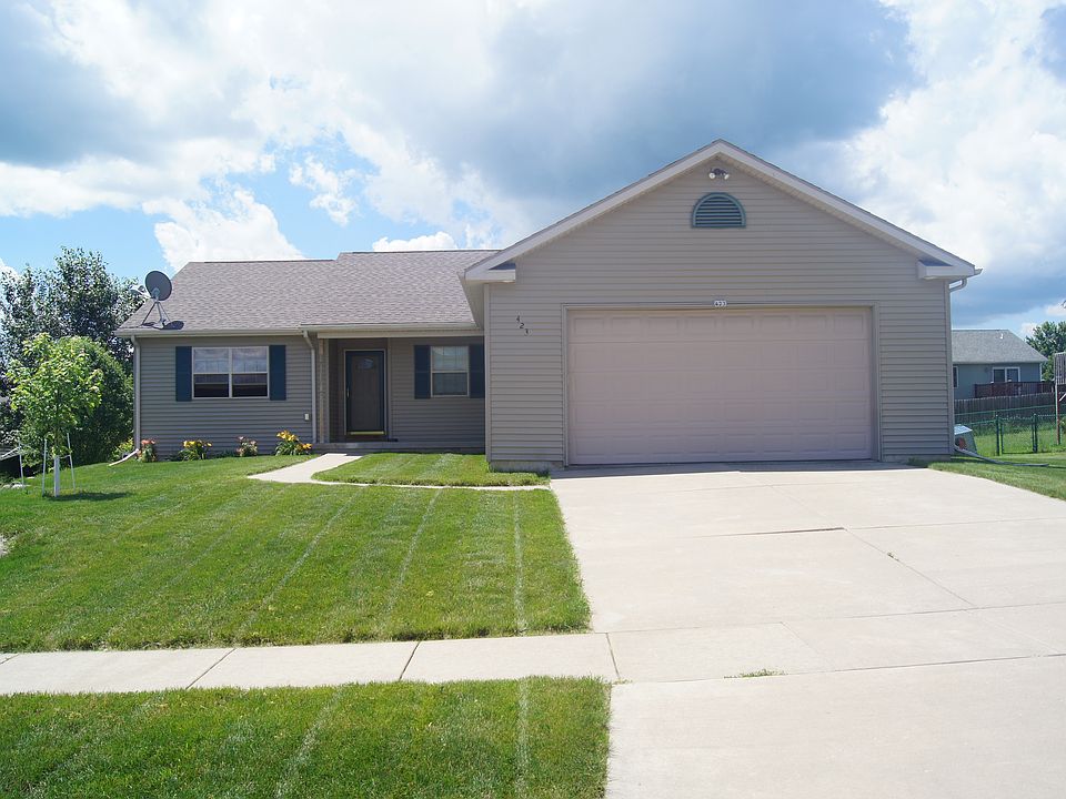 Beautiful home in Deerfield! Large kitchen with attached dining area, open to living room, all under vaulted ceiling. Three bedrooms, two full bathrooms, laundry on main level. Master bedroom with vaulted ceiling, fan, and walk-in closet! Basement finished w/o ceiling, includes second living area, play room, office, and lots of storage. Large 2-car garage. 12x12 deck off the back of the house into a fenced-in yard (vinyl fence). Kitchen and laundry appliances included! TVs & Freezer not included in sale.