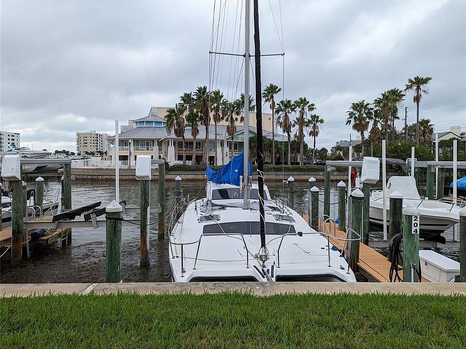 RARE FIND!! CONDO WITH DEEDED DEEP WATER BOAT SLIP (How much will that save you in Marina fees?) DEEDED Covered parking with storage unit and 1 additional non covered parking spot!  Plenty of guest parking too! NEW ROOF 11/22! Condo has had a top to bottom, high caliber renovation (not a flimsy flip). Enjoy the huge, sleek kitchen with profusion of space for cooking, entertaining and storage. Water filtration system installed under sink.  Guest bath has heated towels rack, rejuvenating Jacuzzi soaking tub, rain shower head and custom granite.  Living room has an exceptional view of the Intracoastal as well as beautiful boats at Marker 1 Marina.  Luxury 2'X2' Porcelin tiles accentuate the entire condo.  Master Bedroom overlooks YOUR DEEDED boatslip as well as the beautiful Marina and Intracoastal.  Dolphins play here often!! The location is so close to so much!  Restaurants, Bars, Gym, Publix, banking, Walgreens, Frenchy's Seafood market, Honeymoon Island State Park.  Just a few miles to Downtown Dunedin where you can enjoy all kinds of dining options and Shopping, Farmer's markets, festivals, parades!  You wont be bored here!!   Dont miss this RARE DEEDED BOAT SLIP CONDO!!