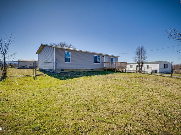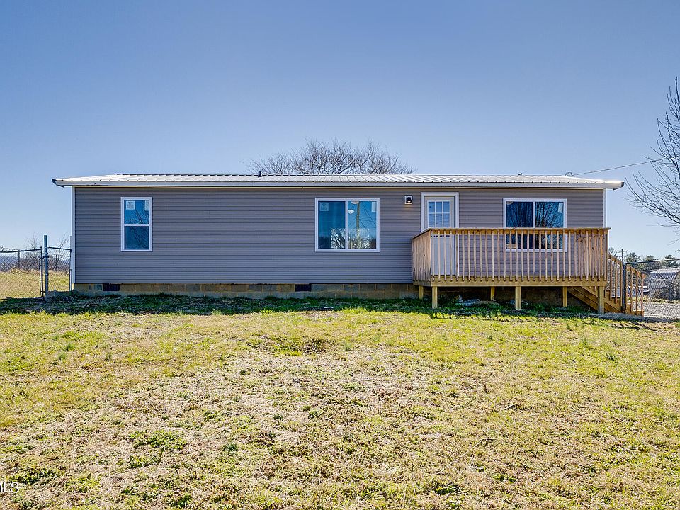 Charming 3BR/2BA manufactured home in Jonesborough, on a semi-level lot with beautiful mountain views that is an optimal opportunity for a first time home buyer, or profitable investment prospect. This home was recently renovated inside and out to include: new electric, new pex plumbing, new metal roof, new windows, new siding, new front porch/deck, new luxury vinyl flooring, new drywall, new lighting, new tiled showers, new HVAC, new septic line and vapor barrier, fully fenced front yard. All appliances convey. Detached outbuilding/shed conveys and allows for additional storage. Property is being sold as is, seller will not negotiate or complete repairs. All information deemed reliable and derived from seller and courthouse records. Buyer and buyer's agent to verify.