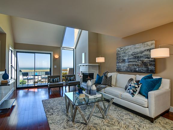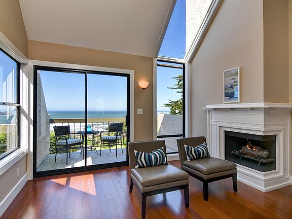 OCEAN VIEW LIVING IN COVETED PORTOLA SHORES Stunning and Rarely available Portola Shores condo with unrivaled privacy and gorgeous ocean views from every floor. This alluring, end unit with three bedrooms two and a half baths and 1,680 sqft has a lovely level in living area with open concept living room, dining room and kitchen all with views of the ocean. The living room has a gas burning fireplace and a wet bar for cozy afternoons or entertaining. There is also a remodeled half bath on this floor. Below the main level are two other floors both with ocean views. One floor has a bedroom and the other floor has the master suite, a third bedroom and another full bathroom. The laundry room is also on this floor. The large two car garage with office and work shop space is on the bottom level. The laundry room comes fully equipped with newer high end appliances, a large storage closet and upper cabinets. The home is beautifully updated with engineered wood floors, marble counter, 6 panel doors, heavy baseboard, window and door moldings and more. This condo just oozes sophistication and elegance and the ocean views are breathtaking! Located within walking distance to the beach and less than 15 miles from San Francisco the location is unbeatable for those who want the luxury of coastal living. Come see it soon as this won't last!
