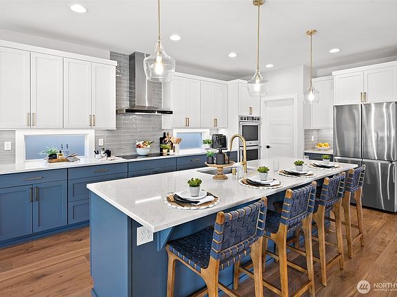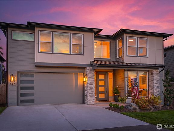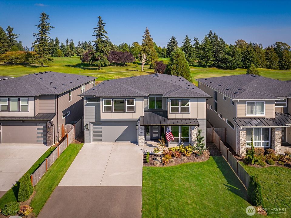 Contemporary Golf Course Living overlooking Legion Golf Course w/ sweeping views & sunsets, this modern home pairs style w/ convenience just minutes to Everett Marina, dining, parks, I-5, & Hwy 2. Inside, soaring ceilings & open spaces include main floor bedroom w/ nearby ¾ bath, ideal for guests or multigenerational living. Kitchen features oversized island, quartz counters, soft-close cabinetry, & walk-in pantry, flowing to dining & living areas w/ a cozy fireplace. Upstairs, a bonus rm opens to golf course deck, the primary suite offers a 5-piece bath, walk-in closet, & deck access. Three more bedrooms, a full bath, & laundry complete the level. Outside: covered patio, RV/boat parking, & direct access to Legion Park and Grand Ave Park.