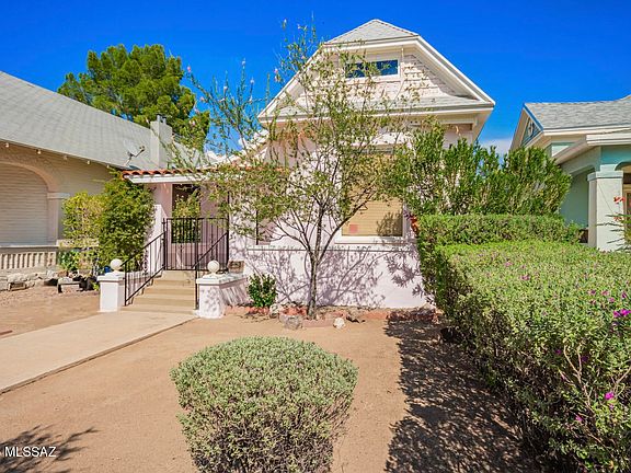 Rare early 1900s gem in renowned Armory Park, with separate guest house/rental unit. This fabulous historic home has been one family's sanctuary for over 50 years, and is ready for its next chapter with you! As soon as you enter the large living room with cozy fireplace, you'll notice the rich wood flooring & soaring high ceilings. Enjoy memorable meals in the bright, stunning formal dining room. Big, open kitchen with ample cabinets and tile backsplash is ready for your personal touch. 2 lovely original bedrooms share jack-&-jill full bath, plus additional bedroom & bathroom at back of home. Large front yard with covered entry & sitting porch, plus spacious rear yard with covered patio. Income-producing guest house with its own entrance, full kitchen & bath. Walk to everything downtown! and a formal dining room, both filled with natural light. Thoughtful details include rich wood flooring, high ceilings, soothing palette, and ceiling fans throughout. The kitchen comes with tile backsplash, built-in appliances, and ample cabinetry topped with crown moulding. Enjoy the outdoors in the spacious backyard, boasting a covered patio and well-laid pavers, perfect for relaxing or entertaining. Don't miss the chance to call this beauty your own
