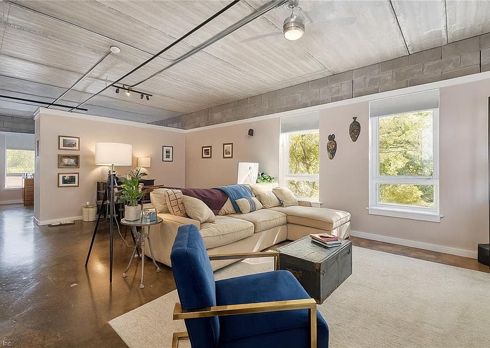This stunning industrial-style condo blends modern design with urban energy. A rare corner unit, filled with natural light from windows on three sides and features soaring 10' ceilings, concrete floors, exposed ductwork, and cinderblock details. The open kitchen shines with stainless steel appliances, crisp white cabinetry, and a subway tile backsplash The expansive layout offers versatility ideal for living, dining, office, or workout space. Generous closets, in-unit laundry, and assigned parking add convenience. Residents also enjoy an elevator, picnic/grill area, and included services: water, sewer, trash, and grounds maintenance. Unbeatable location near restaurants, shopping, EVMS, CHKD, and interstate access. With the St. Paul's redevelopment underway, this is an exciting chance to invest in Downtown Norfolk. Incredible opportunity with assumable 3.2% loan, contact agent for full details!