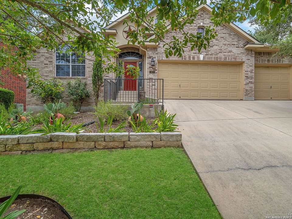 Discover true elegance in this Newmark-built home sitting on one of the larger lots in the highly sought-after Stonewall Ranch community within top-rated Northside ISD. This thoughtfully designed 1.5-story residence offers 3 bedrooms, 2.5 bathrooms, and a spacious upstairs loft, with all bedrooms conveniently situated on the first floor. From the moment you arrive, the home impresses with its striking curb appeal, three-car garage, and welcoming entry. Inside, soaring ceilings, abundant natural light, and beautiful wood flooring create a warm yet refined atmosphere. The chef's kitchen features granite countertops, stainless steel appliances, an island, and ample cabinetry-flowing seamlessly into the living area highlighted by a cozy fireplace and large picture windows. The primary suite is a private retreat, complete with a spa-inspired bathroom offering dual vanities, a soaking tub, walk-in shower, and generous closet space. Upstairs, the loft adds versatility perfect as a game room or media space. Step outside to a serene backyard oasis with mature trees and plenty of room to build a swimming pool! The patio is great for entertaining, play, or relaxation. Perfectly located near La Cantera, The Rim, UTSA, the Medical Center and major employers, this home combines style, comfort, and convenience in one of San Antonio's most desirable neighborhoods. Schedule your showing TODAY!
