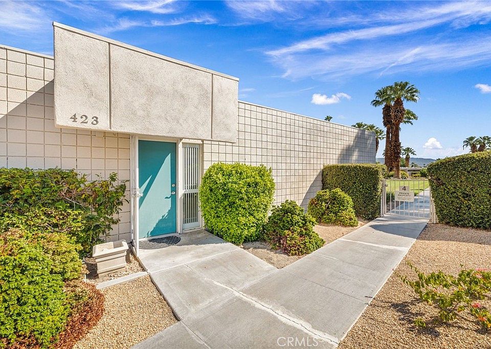 Rare historic jewel of the desert! Mid Century modern unit by renowned architect William Krisel. Come enjoy the family friendly Sandpiper community. This unit is the largest plan with 3 bedrooms and 3 bathrooms, stunning mountain views and is close to the desirable El Paseo shopping district. The kitchen features abundant storage, corian countertops, custom cabinetry and flows nicely into the large open living space with vaulted ceilings. This unit features 2 primary suites, a private courtyard and a relaxing patio overlooking the pool area. Circle 4 is the only circle in the development with a spa.
