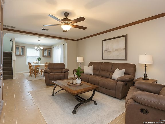 Welcome home to this 3-bedroom, 2.5 bath home with 1757 sq. ft. offers plenty of space for comfortable living. The first floor features a bright living and dining area plus a separate kitchen, perfect for entertaining. Upstairs you'll find all bedrooms along with a versatile game room. The spacious primary suite includes a private bath. Enjoy the huge backyard-ideal for family gatherings, or weekend barbecues. Recent updates, include New roof installed October 2024. Complete with a 2-car garage, this home is conveniently located near Lackland, SeaWorld and Toyota plan.