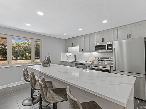 STUNNING new remodel in the desirable Lynn Knoll neighborhood in Aurora - configured for Airbnb! Upon entering you are greeted by refinished hardwoods in the main living area flowing in to a breathtaking brand new open kitchen! This 8-foot-long island becomes the social focal point of the home, and was thoughtfully designed to provide ample seating on 3 sides and plenty of space for food & drink. Calacatta Botticelli quartz slabs pop in contrast with the Italian imported porcelain tile flooring, perfectly complimented by new Aristocraft cabinets, stainless-steel appliances, and under cabinet lighting. A unique black chandelier adorns the dining area. As you travel down the hall you are greeted first by a fully remodeled full bath for guests and the two junior bedrooms, then the primary suite with its own ensuite 3/4 bath in the same designer finishes, all new tile & fixtures. New paint, lighting, hardware, and windows flow throughout the home. The fully finished basement holds an additional surprise - an interior lock off door leads to a full kitchen and dining area of its own, making it ideal for Airbnb, co-living, "mother-in-law suite", roommate, or other "house hack" concept! A large den, open to the basement kitchen also leads to two more bedrooms and another renovated 3/4 bath. This 11,326 sf lot creates a massive back yard with covered patio, plus outdoor entertainment area with walkway to dining al fresca and a firepit. Garden areas, fenced, and full sprinklers, ready for your customization. Mature trees in front yard! Perfectly situated between Aurora Hills Golf Course, parks, playgrounds, water parks, South Middle & the new Del Mar Academy P-8 grade school, Fitzsimmons & Children's Hospital and the Aurora Town Square, and fast highway access. Newer electrical panel, high efficiency HVAC & water main! 1 car garage, Washer & Dryer included! Listing agent is the seller. One basement bedroom is non-conforming. Open house Saturday Oct 4th from 11am-1pm!