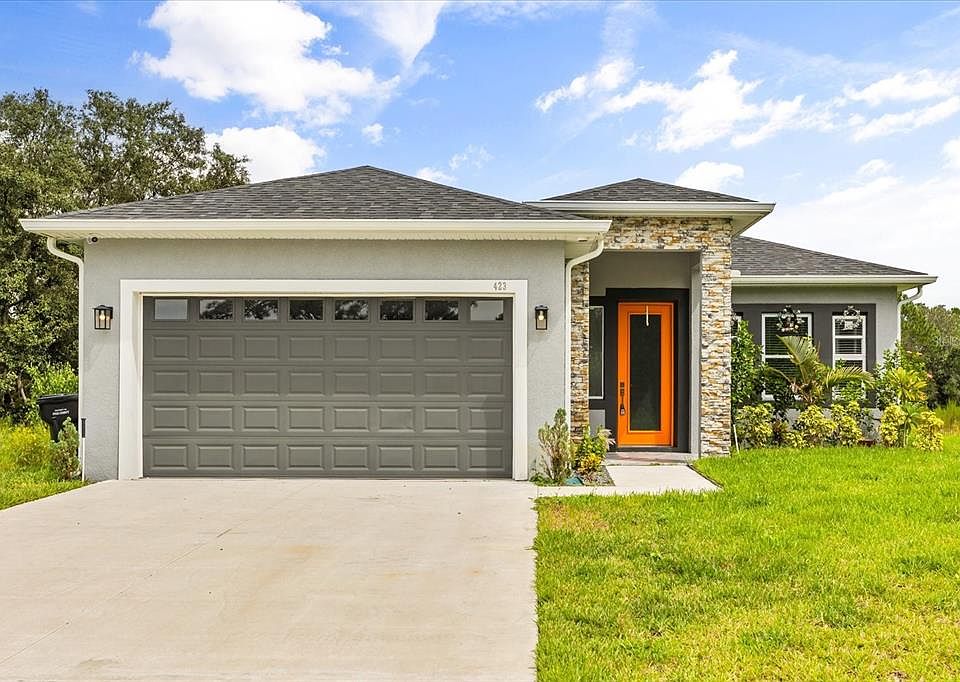 One or more photo(s) has been virtually staged. Welcome to 423 Vernon Court – a modern 3-bedroom, 2-bath home tucked away on a quiet, secluded street in Poinciana. Sitting on an expansive 10,000 sq. ft. lot, this property offers both privacy and space to enjoy Florida living. Step inside to a bright, open-concept floor plan with high ceilings, sleek tile flooring, and abundant natural light. The contemporary kitchen boasts stainless steel appliances, granite countertops, a spacious island, and plenty of cabinet storage—perfect for cooking and entertaining. The primary suite includes a walk-in closet and a private en-suite bathroom, while two additional bedrooms provide flexibility for family, guests, or a home office. A full guest bath and dedicated laundry area add convenience. Outside, the large backyard is ideal for outdoor gatherings, gardening, or simply relaxing in your own retreat. With modern finishes throughout, a spacious layout, and a peaceful location, this home is ready for its new owners.