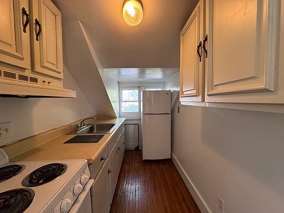 This second floor unit in a 3 unit home will be available middle of dec. The home is located in a quite neighborhood at the end of a cul-de-sac. The unit has a covered sitting porch at the front of the apartment and engineered wood floors in the main living spaces that have been painted avocado green. Stained glass windows, ceiling fans, a There is a small full bath with shower and a galley style kitchen with refrigerator, gas stove, dishwasher, and disposal. Curbside parking is also available with city permit. A common basement provides additional storage as well as laundry facilities. Water is included in the rent. No dogs-no smokers please. No texting please.
