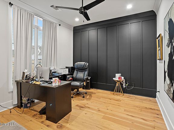 From the moment you approach the grand double doors, you'll sense the quality and attention to detail. Inside, rich hardwood floors, custom finishes, and designer lighting create a refined yet inviting atmosphere. A formal foyer anchors the entrance, flanked by a private office and an elegant formal dining room.