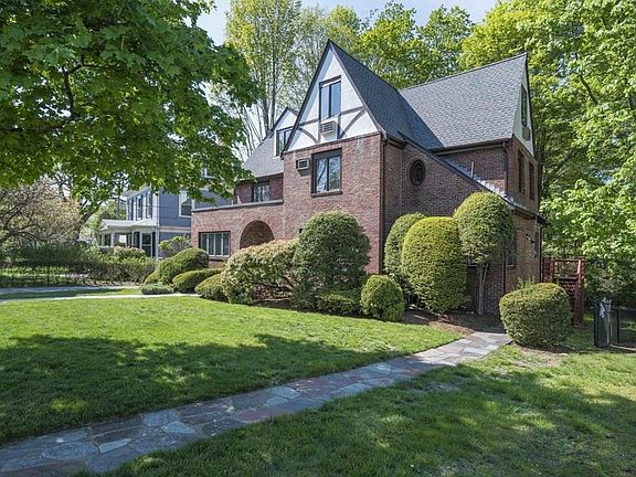 Gracious Tudor in the Ward School area of Newton Centre. Enter this home to find a surprising generously sized center foyer that opens to a front to back living room and an unexpected oversized dining room. The kitchen opens to a deck overlooking a level yard, further increasing the open feeling and great flow of the main level of this property. There is also a smaller, private room on this level that can be used as a study or playroom. Upstairs you will find 6 bedrooms with the versatility to be used as you wish, bedrooms, study, playroom, teen lounge or turn the third floor into a master suite retreat. With its high ceilings, large replacement windows and outstanding location, updating this home will be well worth the investment. 2012 boiler. Close to Schools, Parks, Houses of Worship, Public Transportation and all the Shops and Restaurants in Newton Centre.