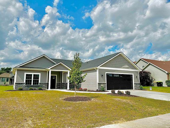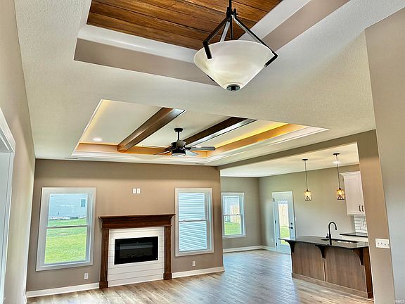 Welcome to cozy Butler, IN! This New Construction, modern dwelling features an open-concept living area with elegant wood-beam ceilings and recessed lighting, creating a warm and inviting atmosphere. Enjoy the cozy fireplace insert with a stylish wood mantel. The space boasts large windows offering abundant natural light and views of the lush yard. The gourmet kitchen includes sleek Granite counters & an island with Sink. Along with the stylish Tiled backsplash, this kitchen is a dream! Additional highlights include beautiful vinyl plank flooring, ceiling fans for comfort, and recessed ceilings in both the living room & Master bedroom adding a touch of sophistication. Don't miss this opportunity to own a beautifully designed Brand New home! Home Warranty included!