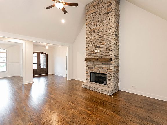 Featured in this lake influence community is a Quality new Construction by J. Davidson Builders. Open concept plan perfect for entertaining. This home has it all, soaring ceilings and stacked stone fp in the living room, gourmet kitchen with gas stove, hardwood floors, nice tile, quality fixtures, even has a tankless hot water heater. Covered Patio