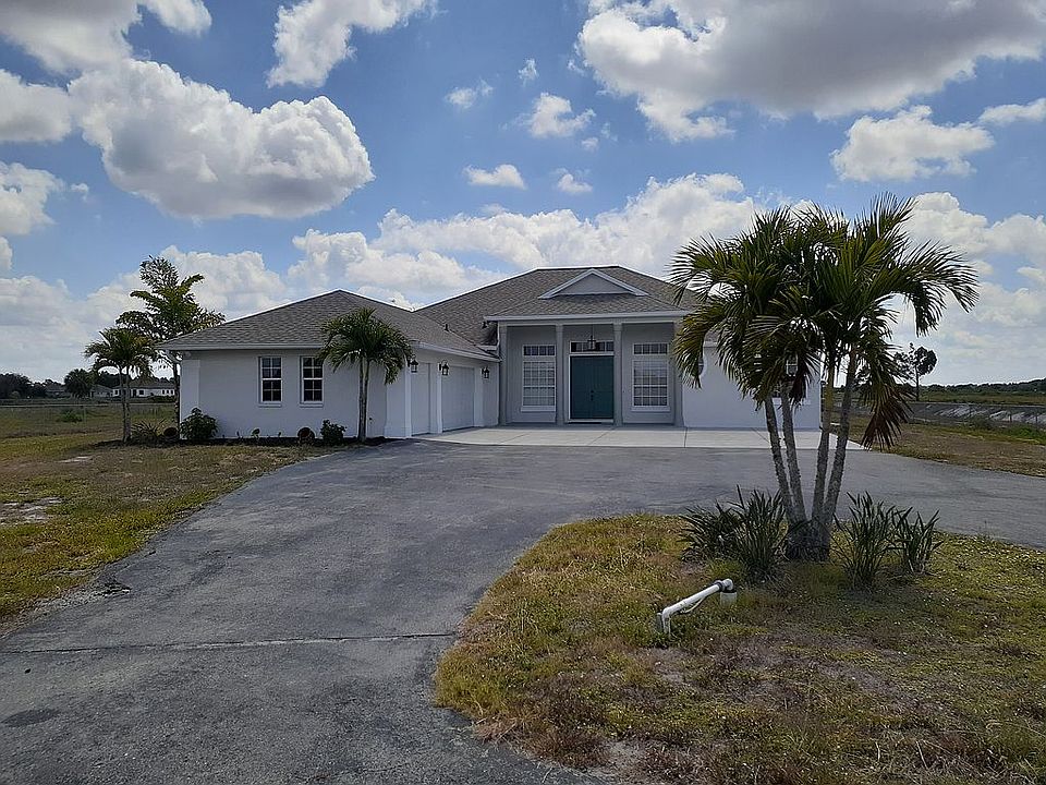 Beautiful Country Estate: Situated on 3.7 acres. This spacious home has 2,680 sq ft under air and offers 3 bedrooms, 3 full baths, large dining room, living room, family room, den, and pool. Home has been completely painted outside and inside. In 2020, a new roof and lanai cage were installed. There is a large outbuilding currently used as a stable. The outbuilding boasts electricity, water, 3 custom built stalls, and a tack room. There are endless uses for the outbuilding (such as an Artist's studio, craft studio, or horse stable). This beautiful home has 600 feet of canal frontage which offers recreational opportunities for canoeing, kayaking, fishing, etc. The property is completely fenced and has a large circular asphalt driveway leading to a large 3 car garage. This beautiful property is a new listing, and is priced to sell quickly at $685,000. To make an appointment to tour the property, please call either of these numbers: (239) 596-0392 or (239) 774-2488. (Please no texts)