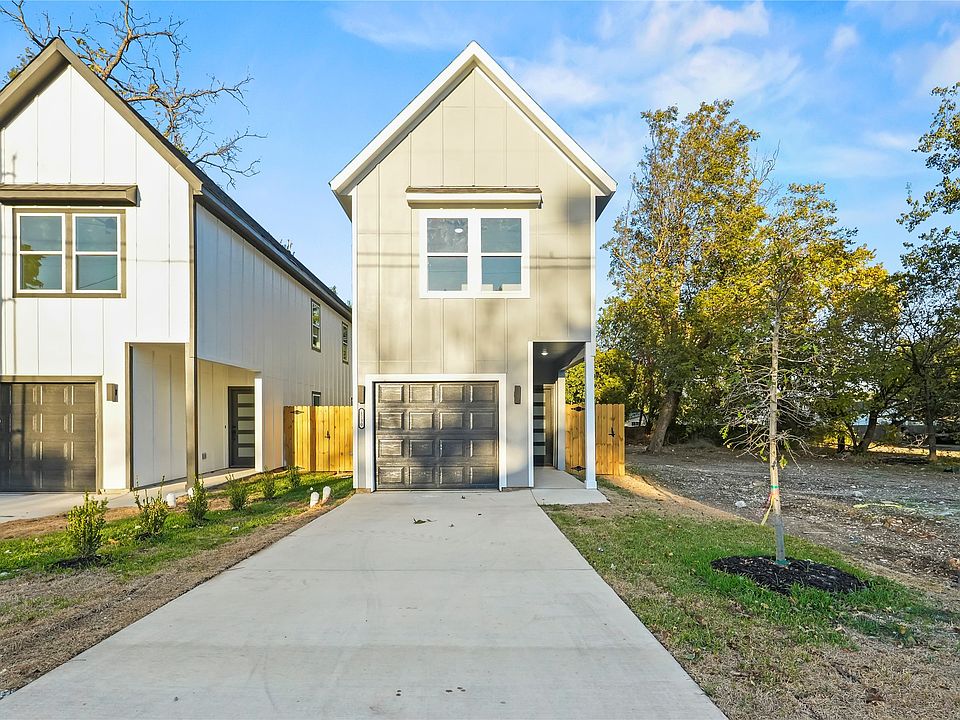 Additional highlights include energy-efficient construction, modern flooring, LED lighting, and a covered patio perfect for outdoor living. The exterior boasts contemporary curb appeal with mixed materials and minimalist detailing.