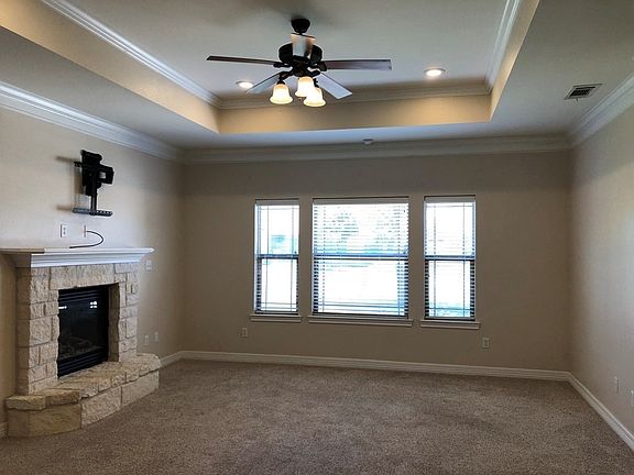 Live Comfortably in The Trails This inviting three-bedroom, two-bath home is designed for both relaxation and everyday convenience. The split-bedroom layout gives everyone their own space, while the spacious master retreat feels like a getaway with its spa-style en suite featuring a Jacuzzi soaking tub, walk-in shower, double-sink vanity, and a custom walk-in closet with built-ins. The open living areas flow beautifully for gathering with family and friends, while the covered back patio and privacy-fenced yard create the perfect spot for weekend barbecues or quiet evenings outdoors. A two-car garage adds ease and storage, and the desirable Trails neighborhood offers a welcoming community feel. This home blends comfort, style, and function making it a perfect place to settle in and enjoy. All applicants are subject to a credit, criminal & rental history check and must meet income requirements.