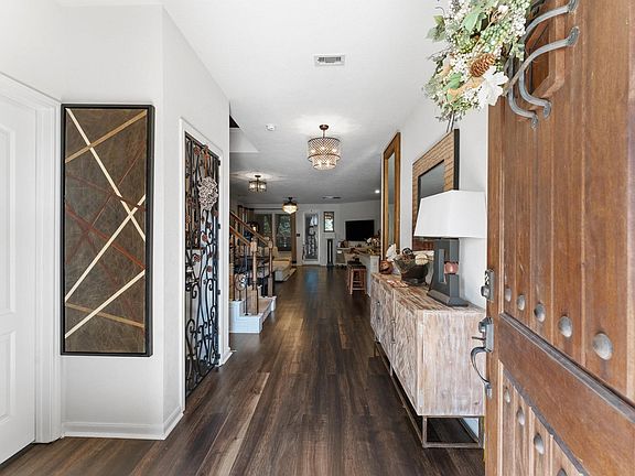 Welcome to 4230 Lake Cypress Circle—a beautifully upgraded 5-bedroom home with a spacious game room and serene lake views. Enjoy custom brickwork along the extended driveway, a covered front patio, and stone planters flanking the garage. Inside, the downstairs primary suite offers convenience, while the upstairs game room and bonus storage add flexibility. The kitchen features granite counters, a stylish backsplash, and a converted wine nook with decorative ironwork. High-end laminate flooring flows throughout the first floor, complemented by custom paint and elegant fixtures. The attic includes added plywood for extra storage, and both the laundry room and primary closet offer enhanced shelving. Step outside to a screened-in patio with tile flooring, string lights, a swing set, and a custom walkway framed by added trees for shade and charm. This home blends thoughtful upgrades with warmth and functionality—ready to welcome you.