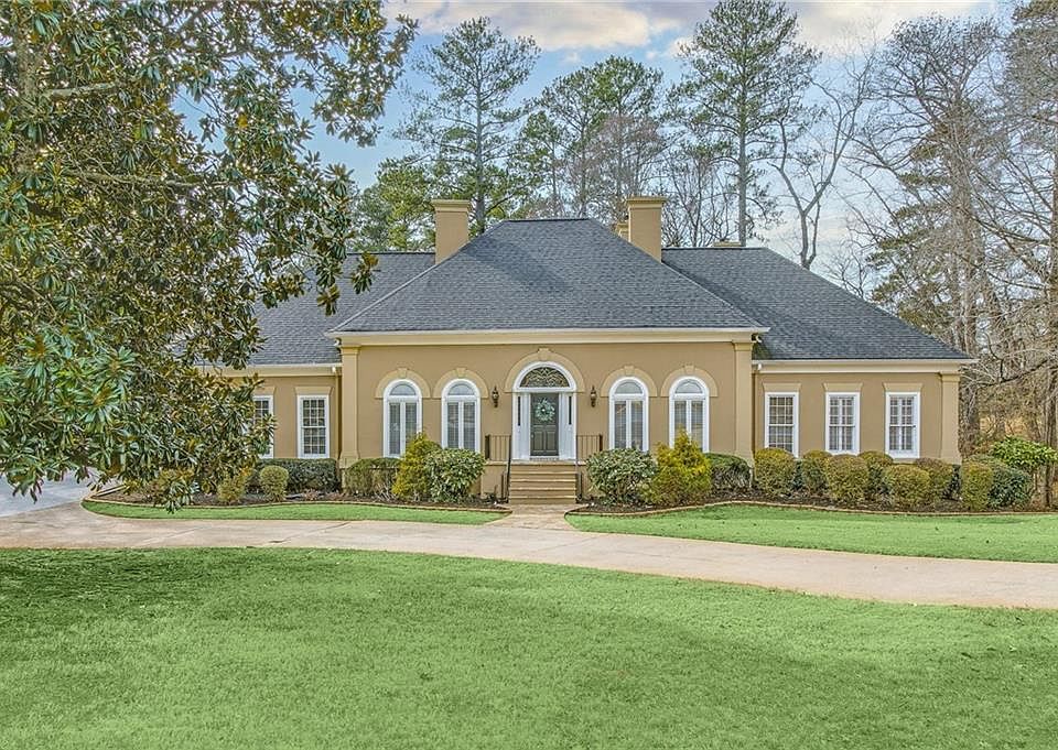 Showings begin Friday, Feb 7 and can be scheduled now on the ShowingTime app only. Almost two acres overlooking a pristine pond, complete with your own dock and gazebo, this setting is a nature lover’s dream. Welcome home to a fabulous ranch on a finished terrace level, nestled on the most spectacular lot, tucked away on a cul-de-sac street in sought-after Neely Farm. The circular drive ushers you into a perfect blend of luxury, comfort and serenity with a floor plan that provides an expansive view of the best that nature can provide. The wide foyer is flanked by a generous study and large formal dining room. From the front door, enjoy an unobstructed view through the fireside great room, sunroom and over the back deck for lovely water views. All the bedrooms and living areas are conveniently located on one level, with the primary suite and two secondary bedrooms at one end and another ensuite bedroom and bath at the opposite end, perfect for an in-law suite. The roof, hardwood floors and kitchen renovation were competed in 2018. Brand new carpet has been installed in the primary and two of the secondary bedrooms. This home is bathed in natural light all day long, making it such a warm and cheerful haven. The terrace level provides the ultimate in entertaining space, a huge daylight central room with a large kitchen area complete with island and refrigerator. This room opens to a recreation room for billiards, ping pong and more. A full bath with laundry hookup makes this level a great option for in-laws to have their own space. The unfinished area is massive and provides an empty canvas for finishing as much or as little as you wish. If this home is missing anything you need, there is more than enough space for you to make it exactly as you wish. The unfinished portion of the basement has recent warrantied professional waterproofing. Neely Farm offers resort worthy recreation, including a 20-acre river park along the Chattahoochee, walking trails, a meadow for ballgames, a Jr Olympic sized pool, lighted tennis/pickleball courts, ALTA, USTA and T2 teams, an active swim team, sport court, playgrounds and a clubhouse for frequent community social events or for you to reserve for your own gatherings. Moments away from top rated schools, parks, shopping and dining at the Forum and Town Center. The location also offers access to metro Atlanta via Hwy 141.