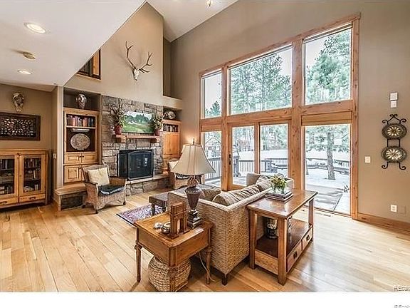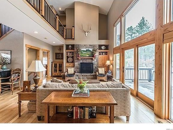 Beautiful custom-quality Perry Park home lives like a ranch with plenty of room for all! Beautiful wood floors, woodwork, slab granite and tile finishes throughout. Upper level offers three bedrooms, two full baths, and a spacious loft open to below for play/study area/family room. Main floor includes spacious master suite with dual closets. Eat-in kitchen features enormous island fit for royalty! Spacious formal dining room includes wonderful built-ins. Plentiful natural light bathes the great room and kitchen overlooking the patio and south-facing yard. Main floor laundry completes the "ranch within a two-story" lifestyle. Basement includes wet bar with island, two bedrooms, full bath, and bonus/rec room with space for pool or dining table. Lot is nearly one full acre with 1/2 acre fenced yard. Patio with outdoor fireplace offers cozy entertaining and relaxing while you enjoy the plentiful wildlife. Easy drive to Colorado Springs, Castle Rock, Tech Center, Lockheed, and more.