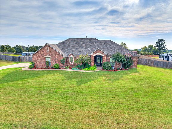 Welcome to 4230 Sundance Ln, a spacious 5-bedroom, 2.5-bath home on an acre in Newalla. Built in 2010, this single-story ranch offers a split floor plan with large bedrooms and a generous primary suite featuring a walk-in closet, toilet closet, and a spa-like en suite with separate tub and shower.