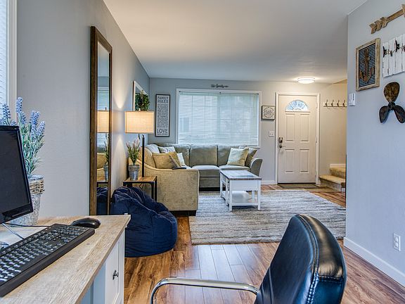 This end unit townhome looks out to beautiful open space in the back and a huge grassy area to the side. It features a main floor living area with an updated half bath with beautiful and durable laminate floors that flow into the bright kitchen with ample cabinet and counter space. Two bedrooms and an updated full bath along with space for a full size stacked washer & dryer take up the spacious upper level. Step out onto the private patio and enjoy the convenient yard space. Located close to shopping, schools, walking trails, and the new Cordata Park with easy I-5 access. For more information or a private showing call 360-739-4477