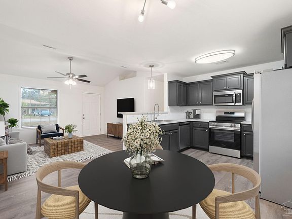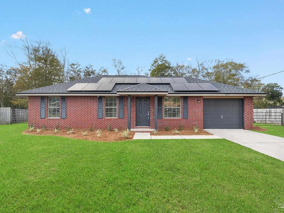 This is the home you’ve been looking for! A stunningly remodeled 3 Bedroom, 2 baths home in the heart of idyllic Pace, Florida. A true rare find that boasts ample solar panels on a new roof which can cut the home's net power consumption to near zero! This charming home has great curb appeal that draws you right in. The southern landscaping leads you to the home’s attractive contemporary entryway. Once inside, you will be greeted with luxurious and modern features throughout the home. This is where you will find everything you’ve been dreaming of! Stepping across the threshold, you will enter the large living room with its tall vaulted ceilings that give that sought after feeling of openness. Adjoining the living room is the incredible kitchen displaying modern cabinetry finished in a very attractive color with tastefully chosen pulls. The tile backsplash pairs beautifully with the warmth of the authentic butcher block countertop. This home has highly desirable stylish plank flooring throughout the open living areas. The spacious master bedroom provides ample natural light, which elicits a relaxing feel. Complimenting the master is a completely remodeled master bathroom which includes a gorgeous euro style vanity and large rainfall shower. When the sun is up, you can feel yourself relaxing in your large private backyard just enjoying the peace and serenity of Florida living at its best! This rare find in Pace has everything: a refinished garage, all new stainless steel kitchen appliances, all new lighting fixtures, all new plumbing fixtures, solar panels, and a brand new ROOF to top it off! You don't want to miss out on this home, it could be the one!