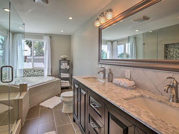 This is a furnished house. Perfect for a family looking to stay for a month or two at a time. There are 3 bedrooms and 3 bathrooms with sleeping accommodations. A large patio with a pool and sleek furnishings create an outdoor space that complements the modern interior. Less than 10 miles from the house, La Jolla Shores Park, Pacific Beach, SeaWorld, and the San Diego Zoo offer opportunities to surf, kayak, hike, and explore the city!