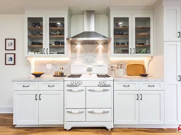 Crisp?modern?flawless. This sophisticated Craftsman cottage was designed & rebuilt in 2017 by a true pro, for her own personal use w/unusual finesse, great use of textures & materials. Set on deep, private lot, located on dead-end St in hip Culver City Downtown District. Stroll past a stunning 100-year-old tree & modern landscaping, to a storybook front porch. Once inside, a warm, immaculate interior, offers today's necessities w/timeless charm: 2 bd, 2 ba, living rm w/black basalt stone fireplace, picture-perfect kit w/Carrera marble, custom cabinetry, vintage O'keefe & Merrit stove, adj dining area, solid walnut flrs, skylights & AC. All systems new as the house is 90% new construction. Private master suite & kitchen open to rear deck & plant lovers garden, professionally curated, offering mature trees, grassy area, unique plants, peaceful outdoor sitting & din areas as well as a beautifully converted garage/guest house with skylights, kitchen, bathroom and patio. Come fall in love.