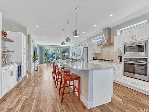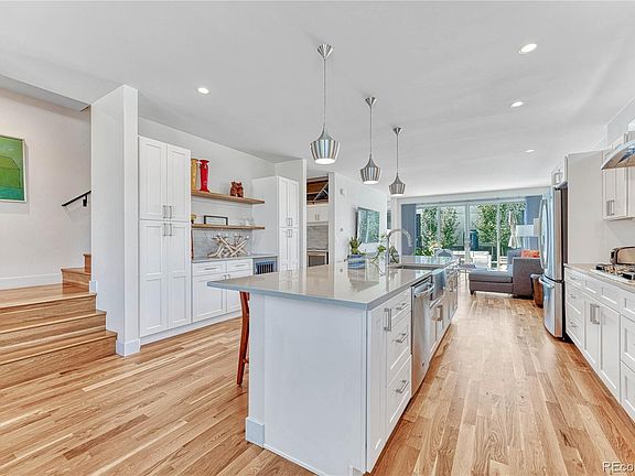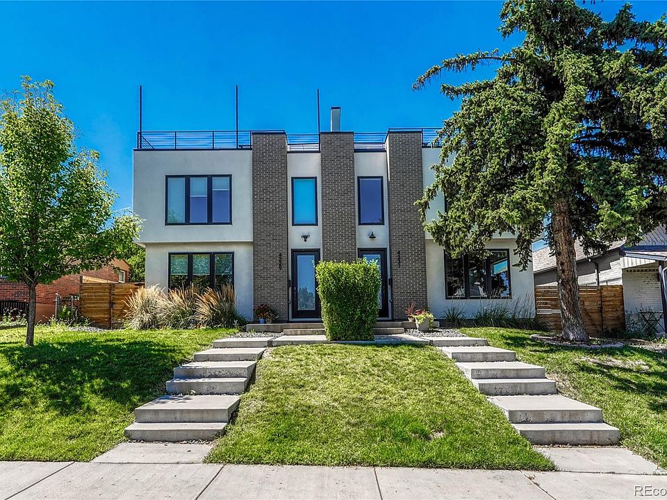 IMPECCABLE Modern Sunnyside Half Duplex located on an oversized lot. Newer build 2017. This the the QUIET end of the Highlands, known as Sunnyside, with wide streets and plenty of parking available. You can walk to LoHi and surrounding neighborhoods but leave the noise and congestion when you return home to your sanctuary in the city. The architecture is stunning and bold, made of brick and stucco (and it doesn't look like the common new builds). Natural light abounds this true open floor concept with custom features! The outdoor living space is beautifully landscaped with TWELVE aspen trees surrounding the large patio for entertaining. In addition, there is a large rooftop deck on the upper level with partial downtown city views. Only a 5-minute drive to downtown, and close enough to walk to Coors Field. This home has incredible upgrades and architectural details throughout, including floor to ceiling windows, hand trowel texture, high ceilings, and reclaimed wood accents. The sprawling kitchen boasts top-of-the-line stainless steel appliances, gas cooktop, quartz countertops (in kitchen and every bathroom), spacious island with overhang for seating, beverage station, and plenty of storage. Bring the outdoors in as you open up the oversized sliding doors to the expanded patio, garden area, and side deck for grilling. The true mudroom leads to a giant, oversized two-car garage with a workshop and lofted storage. Upstairs laundry closet is convenient to the primary suite with huge luxurious bathroom with custom tile, soaking tub, and walk-in shower. You'll find two additional bedrooms or optional study on the second level with a common full bathroom. The third level is an amazing bonus room/floor which can be used for many purposes. Currently, it is set up with a king bed combined with exercise equipment. It could easily be used for a fourth bedroom completely on a private floor with full bath, wet bar, wine fridge, and a spacious rooftop deck.