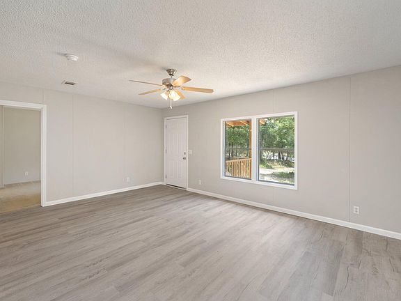 Affordability with a large lot! Located on once acre, this property is newly renovated and ready for you to call home! Open floor plan with new LPV flooring, ceiling fan, and newly painted neutral walls. The kitchen features white cabinets, new stainless steel appliances, and breakfast bar. Bedrooms are carpeted with ample closet space. The exterior boasts a covered front porch and storage building. All located on a paved road and ready for you!