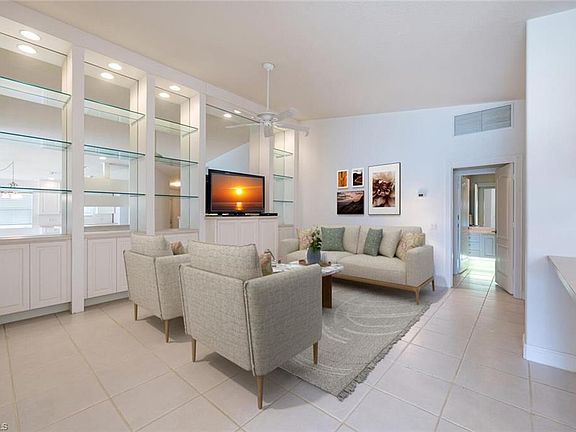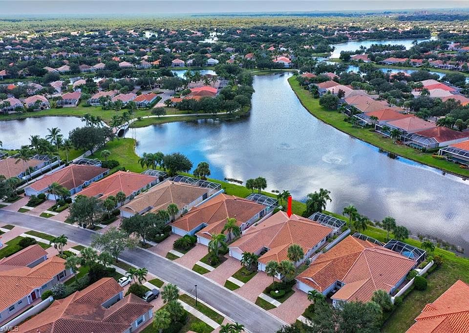 Enjoy beautiful lake views from this popular Capri floor plan!!! The villas interior is original however the major items have recently been replaced. The tile roof, impact windows and accordion shutters for the lanai were all added in 2024. This ensures full peace of mind for storm protection whether the new owner is a seasonal or year-round resident. The water heater was replaced in March 2025. Signature DiVosta features include the custom wall unit in the great room, spacious walk-in closets with built in cabinetry, storage cabinets in the garage and tile floors throughout the villa. There is no carpet in sight. Imagine designing your dream home tailored to your taste. The possibilities are endless for transforming this villa into your own slice of Paradise. Island Walk offers a vibrant lifestyle with a resort-style clubhouse with state-of-the-art fitness center, lap and leisure pools and courts for tennis, bocce and pickleball. The Town Center brings convenience to your doorstep with a post office, car wash, restaurant, gas station, and nail and hair salons. Reasonable fees include cable and internet and there is no CDD here. Terrific opportunity with this listing!!