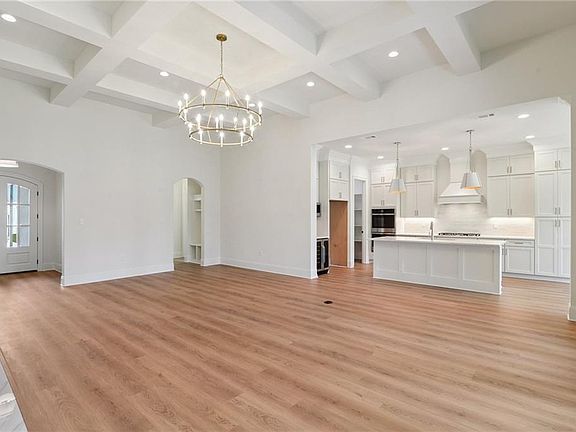 Brand New Construction by Guastella Properties located in the highly sought after gated neighborhood of The Estates at Watercross. Welcome home to this stunning 4-bedroom 3- bathroom residence. Bringing distinction and beauty to the exterior of the home, you will be greeted by a gaslit entrance and professional landscaping. Once entering, you will see a thoughtfully designed estate with modern living in mind, featuring an open-concept floor plan, soaring 13 ft. coffered ceilings in the living room, a stylish brick accent wall that adds warmth and character, and an abundance of natural light throughout. The chef's kitchen boasts custom cabinetry stretching from floor to ceiling, gleaming quartz countertops, large walk-in pantry, stainless steel appliances including a wine cooler, and a large island great for entertaining. The spacious primary suite offers a decorative molding wall in the bedroom attached to a spa-inspired bathroom with dual vanities, a large free standing soaking tub, walk-in shower with rain can, and dramatic cathedral style ceilings attached to a generous walk-in closet. Additional highlights include a 2-car garage with an oversized driveway, and a covered pavestone patio with hookups ready to install your dream outdoor kitchen. Don't miss your chance to make this house your next home!