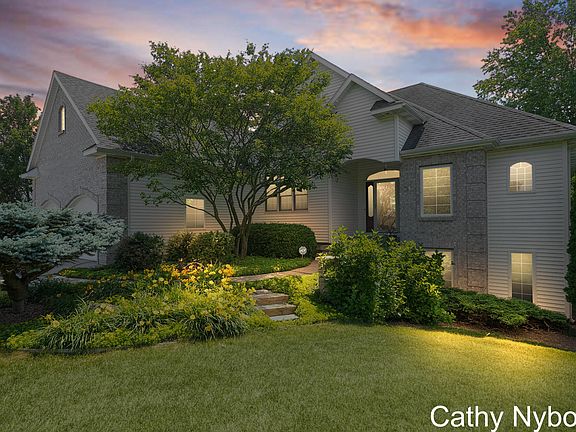 Located on a cul-de-sac in one of Grandville Public School's most sought-after neighborhoods, this beautifully maintained 4-bedroom, 3 full bath brick front ranch offers the perfect blend of comfort, style, and space. Step inside to discover a spacious layout of 1,925 square feet (main) with soaring 9' and 13' custom wood paneled ceilings and tons of natural light, ideal for both everyday living and entertaining.