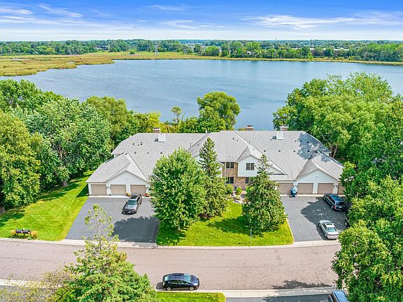 New carpeting, freshly painted, new backsplash in this beautiful manor home. This unit is in a private setting with lake views. This is a secured entry Condo unit that is located on the 2nd floor of the building. Amazing sunrises, gorgeous ever-changing lake views out your backyard windows and deck. A cozy wood-burning fireplace warms the living room. This unit faces the lakeside! The unit features 2+ bedrooms, 1.75 baths with a one car attached garage. The 3rd room does not have a closet but would work well as a den or office and has French doors that open up to the main living area. Breakfast nook/eat in kitchen and separate dining space. There are 2 patio doors leading from the kitchen or living area onto the deck with those great nature views. Natural gas forced air heat and central air. Appliances include stove, fridge, dishwasher, washer and dryer. Easy access to 35E and Hwy 96. Information deemed accurate but not guaranteed. Agents, tenants to verify all information and HOA documents.