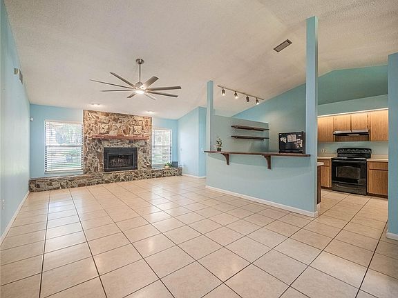Fenced yardBonus roomSoothing color schemeOpen floor planFamily room fireplaceTile flooringSpacious utility room