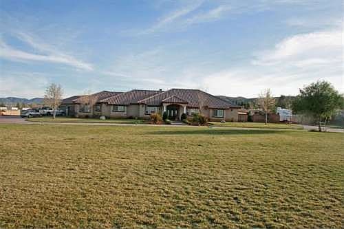 THIS IS A CUSTOM MEDITERRANEAN ESTATE, ZONED FOR HORSES. THE FRONT OF THE ESTATE FEATURES A GATED ENTRY, LARGE WRAP AROUND DRIVEWAY AND SPACIOUS FULLY LANDSCAPED FRONT YARD. THIS EXQUISITLY DESIGNED HOME FEATURES ARCHED ENTRIES, BULL NOSE CORNERS, CROWN MOULDINGS AND COFFERED CEILINGS. LINE APPLIANCES AND A BREAKFAST NOOK. THE MASTER BEDROOM IS A SANCTUARY FEATURING: DUAL WALK-IN CLOSETS, HIS AND HER VANITY AREAS, LARGE SHOWER W DUAL SHOWER HEADS AND A RELAXING SOAKING TUB AND POWER AREA. THE YARD IS AN ENTERAINERS DREAM: BEAUTIFUL BUILT IN BBQ AREA WITH BOTH GAS AND CHARCOAL BBQs WITH A LARGE BUFFET STYLE SERVING PLATFORM. RELAX BY THE FIRE-PIT AND CUSTOM BUILT WATER FOUNTAIN THIS 2.5 ACRE ESTATE OFFERS LOTS OF FREE SPACE FOR STABLES, ARENAS, POOL, BASKETBALL OR TENNIS COURT.