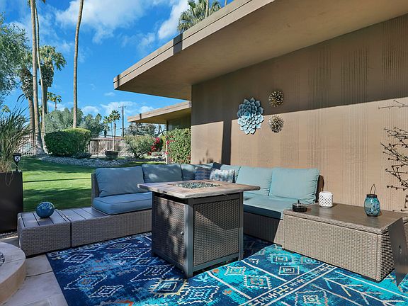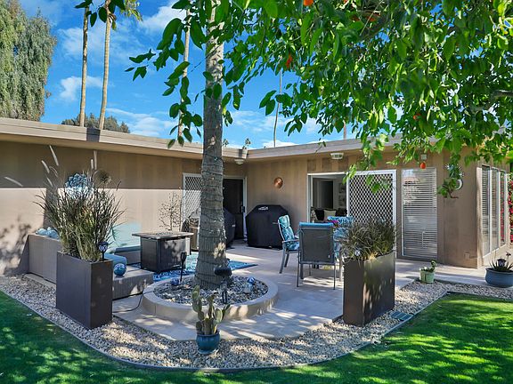 ONE OF A KIND Bermuda Fairway Villas - a charming enclave of Adorable Mid-Century cottages nestled between the 1st and 18th fairways of Bermuda Dunes Country Club.This beautifully and professionally remodeled condo offers a bright and welcoming atmosphere with only one common wall and convenient access to the community pool, spa, and parking.Upgrades include:Newer stainless steel appliancesHigh-end wooden window blinds and updated slider blindsRadiant electric fireplace insertLight textured paint on walls and ceilings for a fresh, airy feelNewer baseboards and tile flooring throughoutNew electrical panel and outlet rewiring (2018)Brand-new AC/heat pump (2024)The home also features added square footage, creating a spacious dining/great room area. One of the highlights is the expansive tiled patio, perfect for outdoor entertaining.Additional amenities:Attached golf cart garage with automatic opener, full-size washer & dryer, and extra storage space for your golf cartOne covered parking space plus tandem parking for a second vehicleHOA covers all exterior maintenance (including roof), landscaping, water, trash, septic, and exterior pest controlSecurity dues of only $214/month include cable TV (two boxes with HBO, Showtime & Cinemax), Spectrum internet, and 24-hour guard-gated. Villas HOA fee includes, trash, water, waste, exterior wall paint/lighting and roof maintenance.Come see this rare opportunity to have Mid Century Charm with today's standards of living accommodations