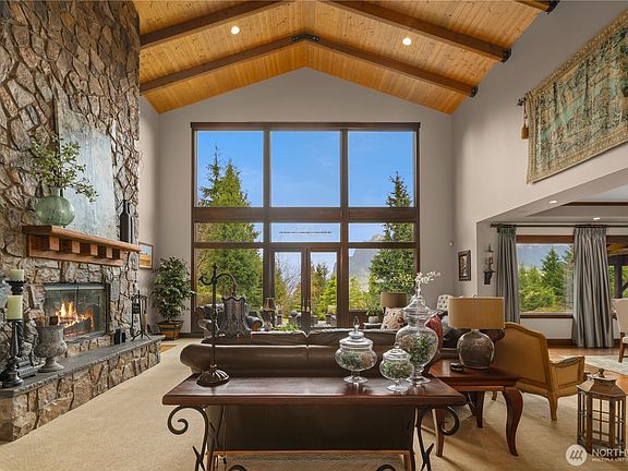 You don’t have to go far to feel far away. Discover your own National Lodge in the Uplands. This bespoke 7-acre estate, custom-built Northwest timber home by Tom Banducci stuns you with breathtaking views of Mt. Si from nearly every room. Perfectly positioned between nature and the city, just 25 min from Bellevue & 20 min from Snoqualmie Pass. Active living abounds here! Enjoy the multisport court w/pro-style batting cage, and the 4-season covered heated patio offers year-round enjoyment. A separate wing for the primary suite ensures privacy and quiet. Wing 2 features 3 addl bedrooms & 2 rec rooms gives you room to grow. 4-car attch garage + 4-car detached gar. Covered RV/Boat pkg. Ensuite on main level. Whole-house generator. Pre-inspected