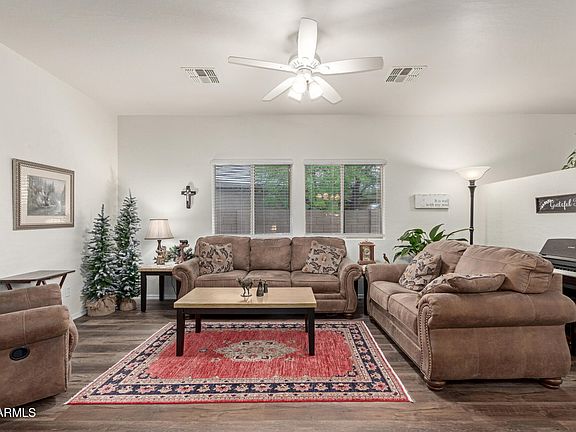 No Rear Neighbors and Solar too! Warm and cozy home in a fabulous award winning master planned community. The floor plan includes an over-sized 2nd bedroom and a front den that could serve as a 3rd bedroom. The garage has been extended by 3 1/2 feet and accommodates a work bench and extra storage space. Beautifully landscaped backyard complete with spa and additional seating area under a covered gazebo. This wonderful home backs up to open desert and walking path providing greater measure of privacy.