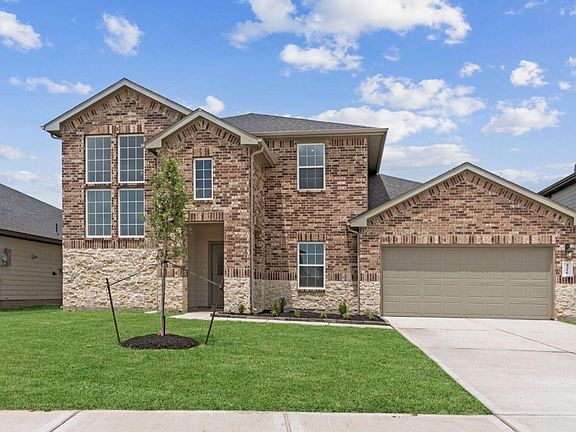 Welcome to D.R. Horton's Lancaster floorplan located in the highly sought-after community Westland Ranch. Explore one of this communities' largest plans, with around 2941 Sqft and 2 stories of great features. This unique home offers 2 bedrooms downstairs and a study, as well as 2 bedrooms upstairs and game room overlooking the open concept living, dining, and kitchen area. The high ceilings of the living space offer a stunning view into the backyard and covered patio and lots of natural light. The kitchen features beautiful countertops and stainless-steel appliances, perfect for everyday use. Both durable and visually appealing, the luxury vinyl flooring can be seen throughout the home. The exterior of this plan boasts a traditional brick and stone face. Westland Ranch is the place to be, with great community amenities and location in the growing city of League city. *Images and 3D tour are for illustration only and options may vary from home as built.