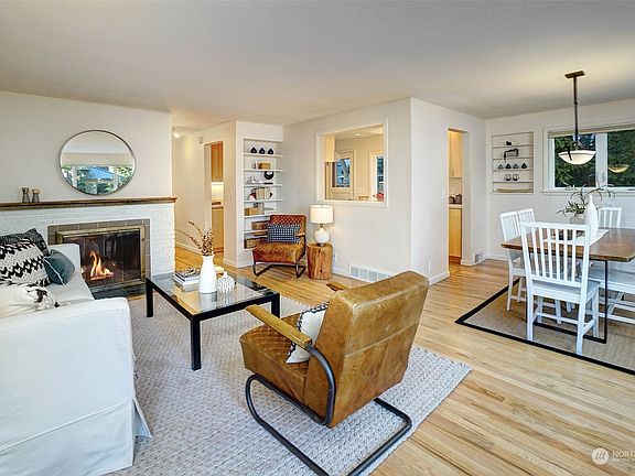 Enchanting one level mid-century charmer on quiet, desirable street. Open living, dining room and remodeled kitchen, three bedrooms, special full bath with separate shower and tub. Hardwood floors throughout, two fireplaces, newer vinyl windows, fresh paint. Attractive, private fully fenced yard with side and rear patios. One car garage with extra storage area steps right into home. Don't miss this terrific rambler!
