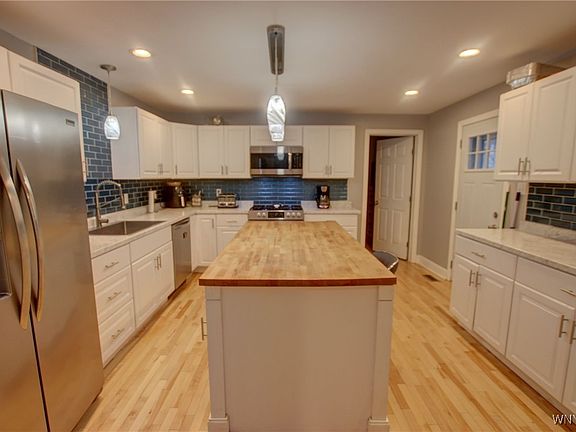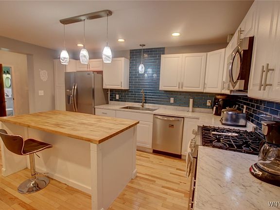 Welcomer's unit has all the upgrades. Updated kitchen with sapphire blue subway tile backsplash, surrounded by a to 4233 Quinby. A rare 3 unit home on an acre lot, steps from the village of Hamburg. Stunning ownell new cabinets. Large butcher-block island with a breakfast bar. All stainless steel appliances. 10 foot ceilings throughout the first floor with LED recessed lights. Large windows, mostly updated that let in a ton of natural light. Recently installed Northern Canadian Birch hardwood floors, and patterned ceramic tile. Updated lower bathroom, just last year. Very clean throughout, lots of new carpeting, and much of the house recently painted. AC in all three units! 27 foot above ground pool only a few years old. Main sewer line replaced.