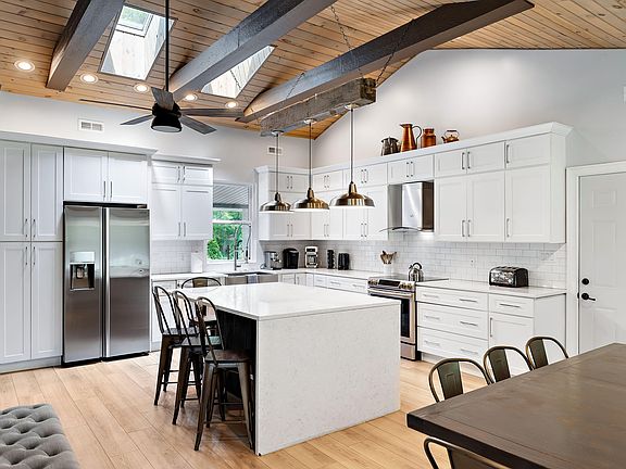 Great renovation - Vaulted ceiling in Living / Dining & Kitchen. Center Island Kitchen with Stainless Steel Appliance.