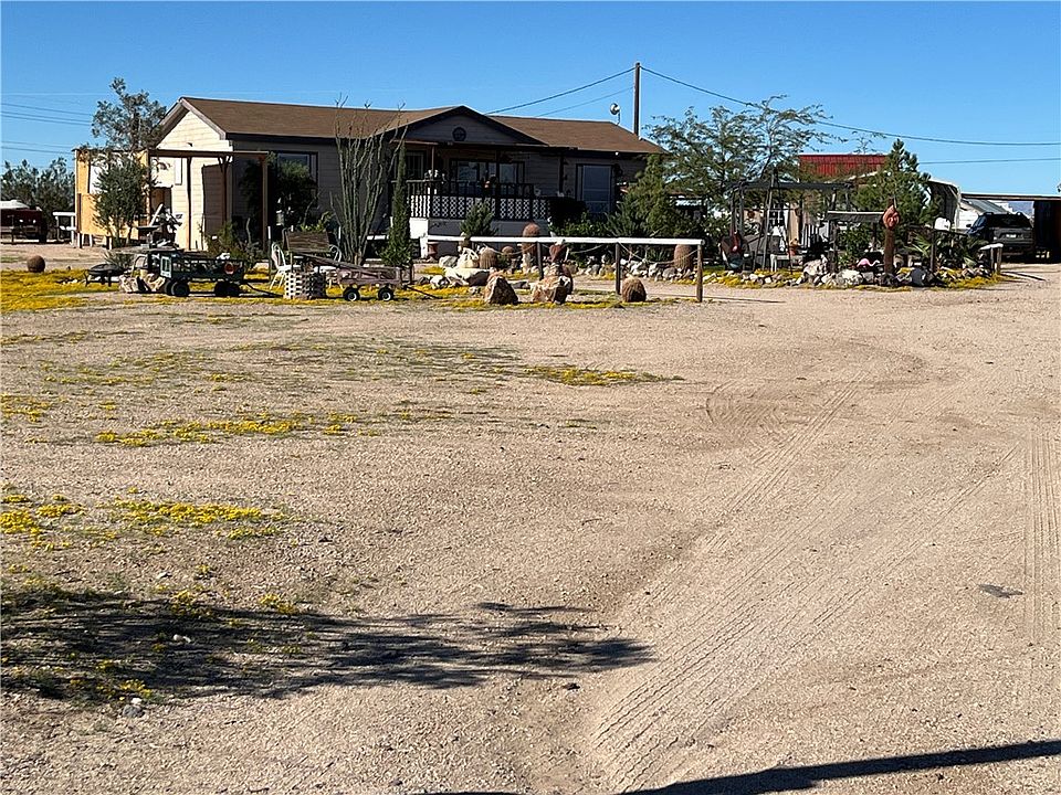 Welcome to the Wild West! This 2-bedroom, 2 bath home on 1.14 fully fenced acres is move-in ready. With plenty of sky lights and large windows, there is an abundance of natural light. The open concept kitchen with its large lighted pantry along with a built-in coffee bar and upper cabinets provide plenty of storage. In the Primary bedroom there is room for a California King Bed. Also, a large walk-in closet delivers lots of room for clothing and other items. A bathroom with dual sinks, a separate shower and a soaking tub complete the primary bedroom. Currently the seller has placed a hard cover over the soaking tub which can be removed. The second bedroom also boasts a deep closet. For those desiring a separate office, library, or even plant room, there is one just adjacent to the living room. Enjoy morning coffee at the outside under the covered porch while gazing at the Hualapai or Black Mountains. There is a separate covered porch area where a TV hookup is located for watching one s favorite programs. From the laundry area, there is access to a porch and the private enclosed backyard. With laminate flooring throughout except for the second bedroom, this home is pet friendly. Fans in all rooms help to maintain a sense of coolness. Outside there are two storage sheds and three carports. Rustic western décor compliments the landscaping. With 2 gates, makes for easy to entry to this property from Mayan Drive a county-maintained road. By the way, don t forget the dark skies that provide numerous opportunities to gaze at the thousands of stars or the quietness of the high desert except for the howl of a lonely coyote. For those seeking amenities, Kingman is about 15 minutes away and Bullhead City/Laughlin river activities are about 60 minutes away. The historic mining town of Oatman with its burros and weekend shows is less than 30 minutes away on Oatman Hwy/Old Route 66. Why not Invest a few minutes to drive by and imagine the possibilities of living here in the high desert with plenty of elbow room?