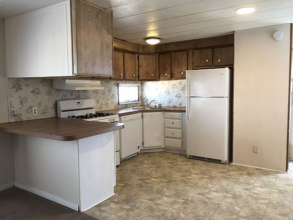Enjoy the pleasures of peace and space on this nice sized lot right off paved road. This cute home has 2 bedrooms 1.5 baths an adorable kitchen and nice living area. The kitchen has white appliances, plenty of counter space and a pantry. In the hallway is full washer and dryer hookups with both gas and electric. There are two evaporative coolers, one on the roof and one in the living room. There is a deck that is handicap accessible and separate fencing for a dog run from the back yard. There are no homes on the East so it's very quiet. The septic was just pumped and inspected. Don't miss out on this little gem.