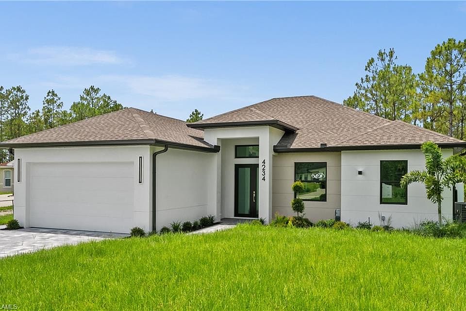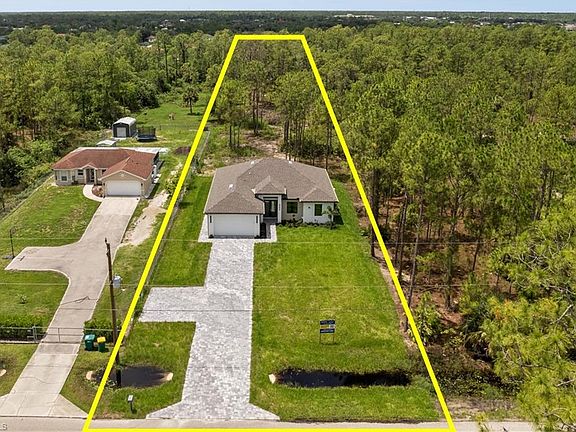 Welcome to your brand-new oasis, perfectly positioned in a highly desirable, fast-growing area right in the center of “the Estates.” READY TO MOVE IN. This stunning home sits on a 1.14-acre 100% upland lot, offering the perfect blend of security, comfort, and privacy—all built to the latest Florida construction codes for peace of mind. Step inside and enjoy nearly 1,800 sq.ft. of A/C living space and 2,950 sq ft under roof, with a bright, open layout designed for modern living. You’ll love the chef-inspired kitchen, quartz countertops, a beautiful waterfall island, soft-close custom cabinetry, and top-of-the-line stainless steel appliances. Each of the 4 bedrooms features built-in closets, including a Primary suite and 3 full bathrooms. The two-car garage comes with an elegant epoxy finish, while your whole home benefits from a premium reverse osmosis water filtration system. Luxury and practicality meet with designer bathrooms and Kitchen, pavered driveway and an over size dbackyard—perfect for relaxing or hosting friends. There’s even room to add a guest house or a sparkling pool to boost your investment. No HOA and no pet restrictions mean total freedom. Enjoy a peaceful retreat surrounded by nature, just minutes from Ave Maria, Naples, award-winning schools, restaurants, and the beach. This is more than a house; it’s a lifestyle upgrade in a vibrant, up-and-coming community. Home warranty included—make this dream yours today