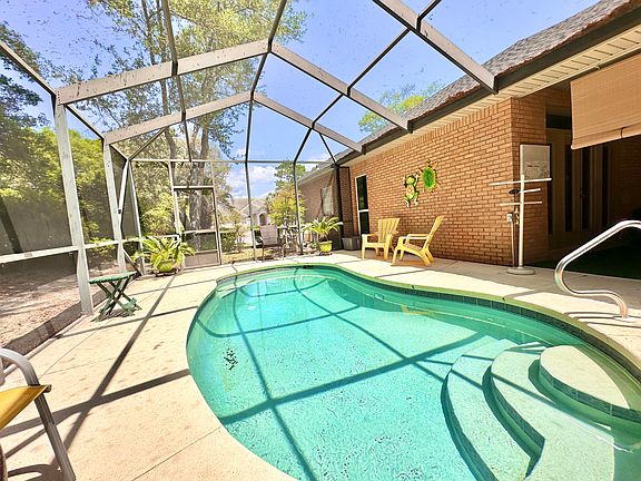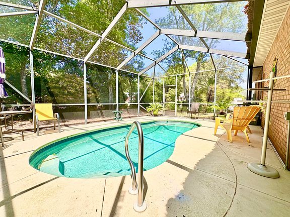 Beautiful home in Magnolia Plantation with a SCREENED IN PRIVATE POOL. 3 bedrooms and 2 baths with a split floor plan. This home is located on a quiet cul de sac and sits on a luxuriously landscaped .36 acres. 2 car garage. Kitchen opens up to family room and eat in area. Two living areas and 9' and 10' ceilings. Crown molding throughout. Great for entertaining. 24X11' Screened in porch and pool. NEW ROOF INSTALLED 2022. Newer HVAC.